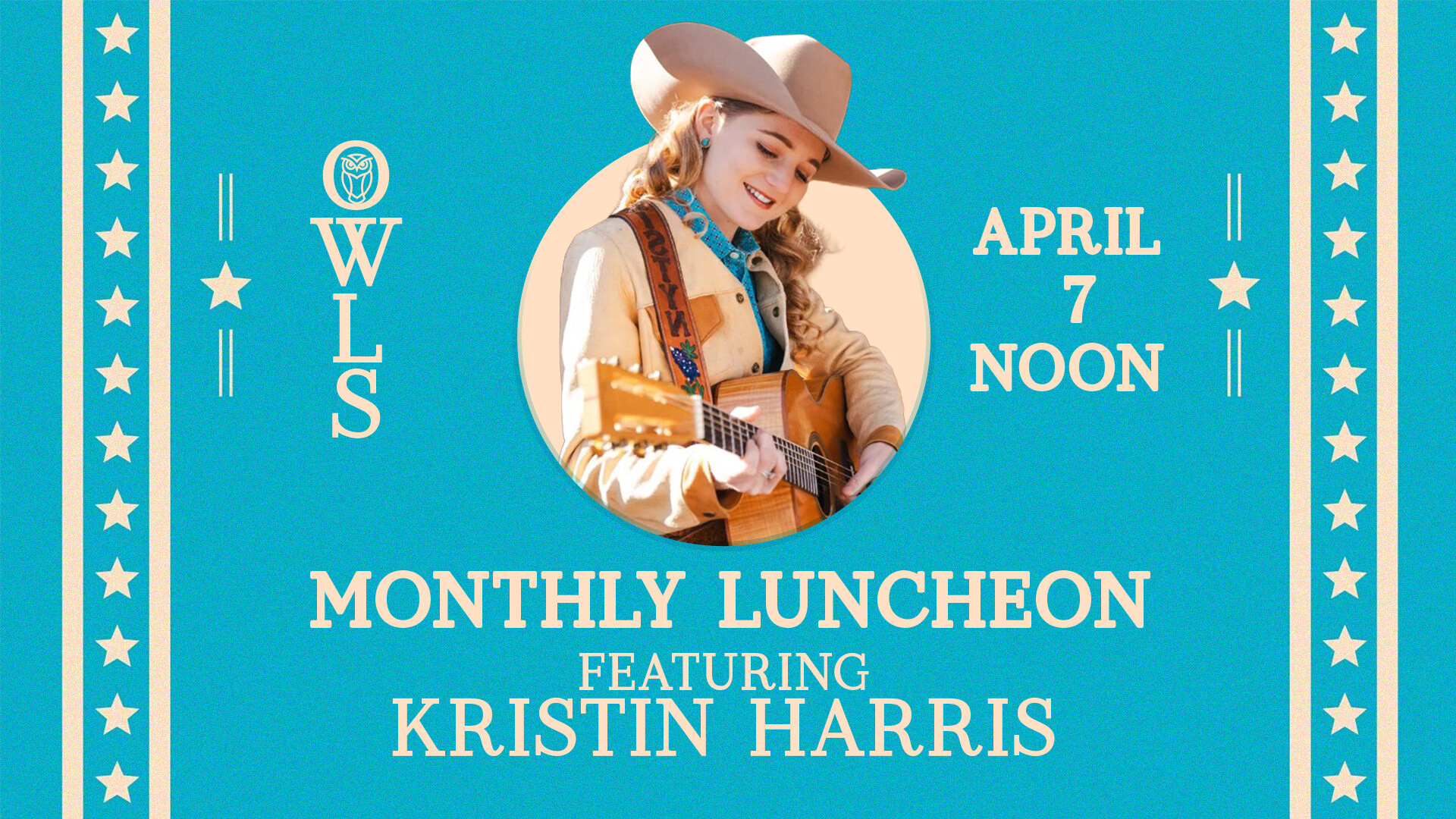 Senior Adults, join us Tuesday, April 7 at noon in Fellowship Hall for our monthly luncheon! We'll have great food and fellowship. Our guest entertainer will be Kristyn Harri. Kristyn is an award-winning singer, songwriter, and entertainer from Burleson, Texas, known for her western swing spin on original and classic songs of the western and rural lifestyle.