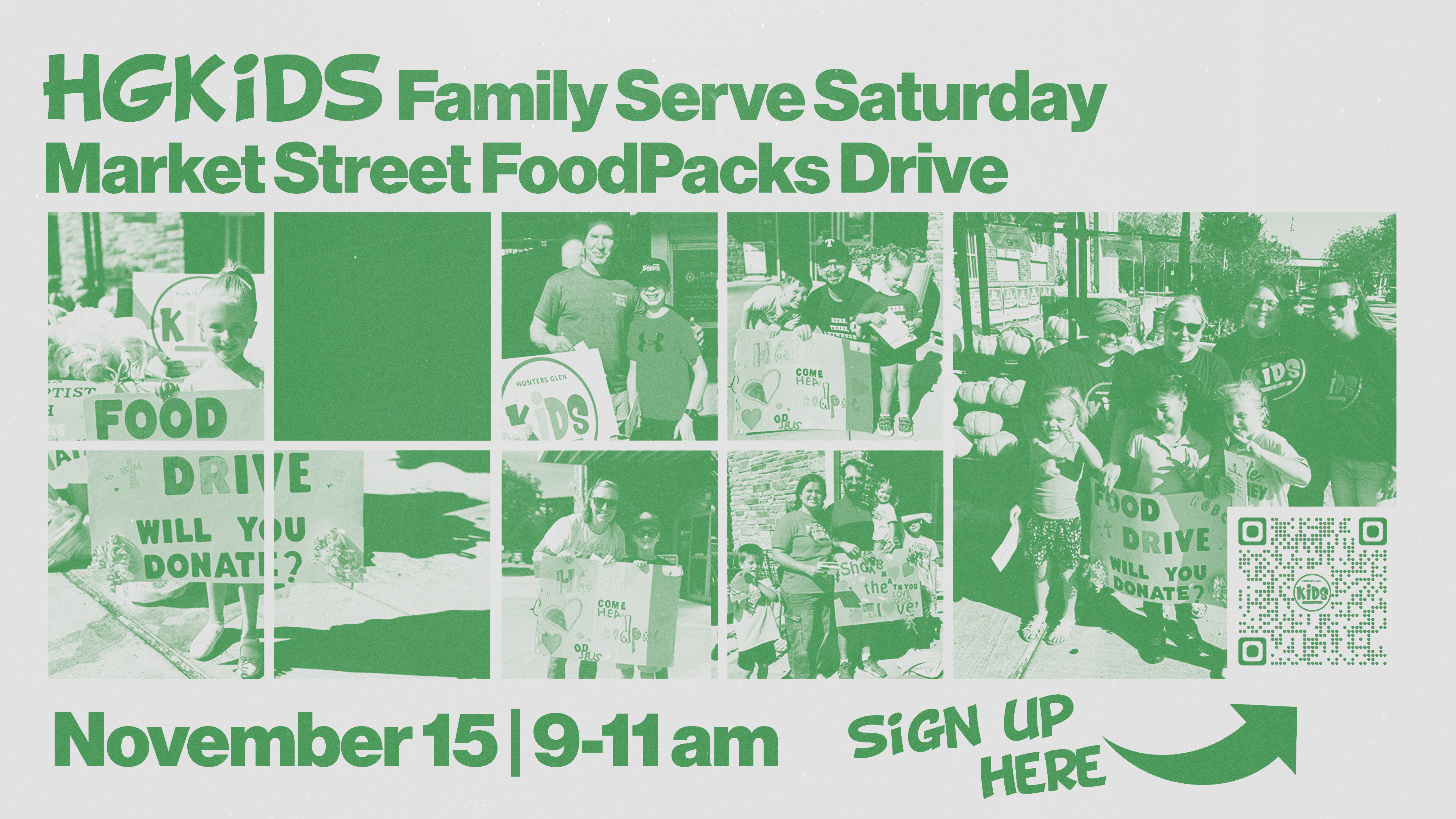 We'll collect food for Food Packs for Sigler Elementary at Market Street at Preston and Park on Saturday, November 15th, from 9:00 -11:00am. Sign up for times to serve together with your family!