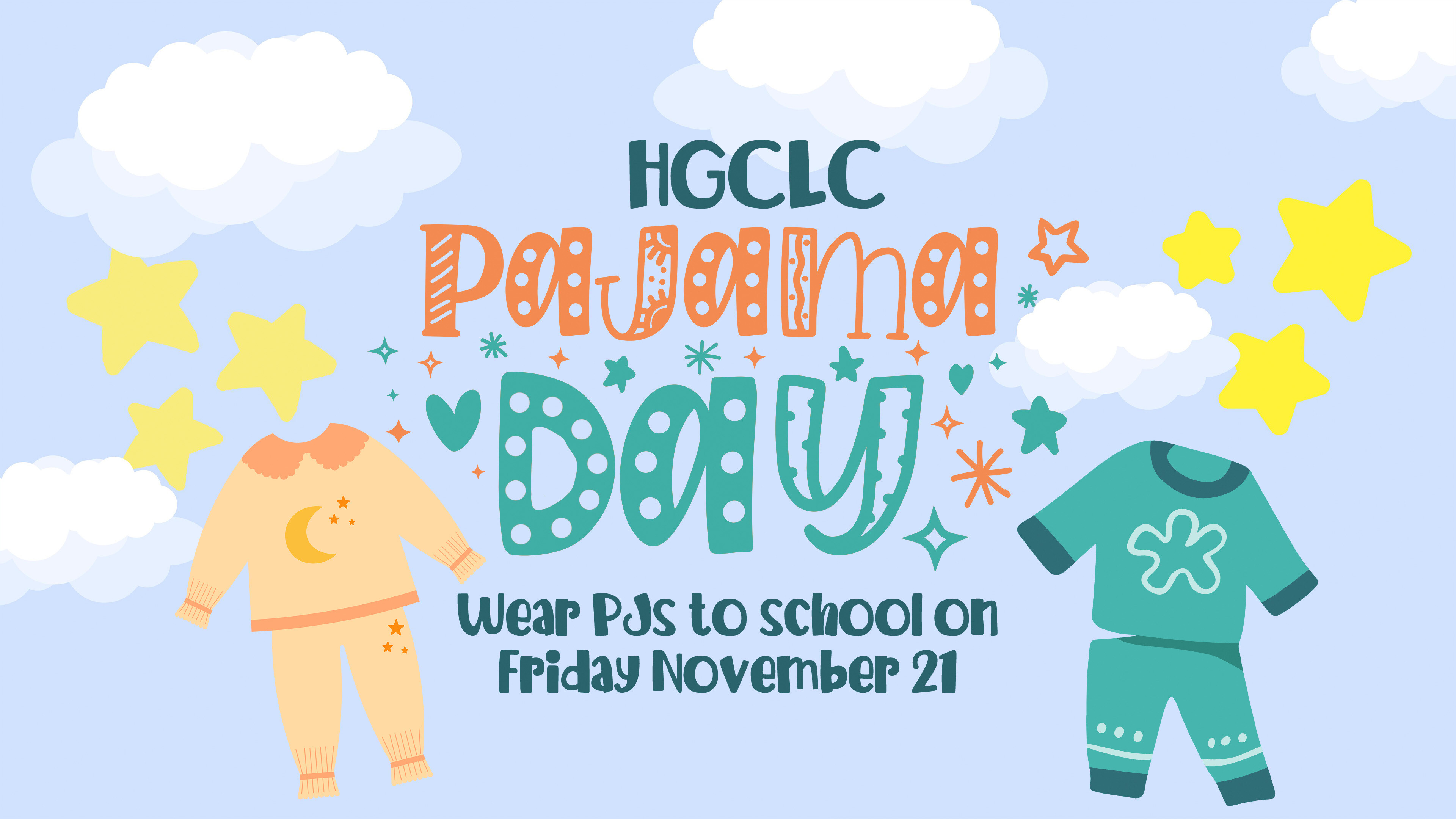 Wear your PJs to school on Friday, November 21!