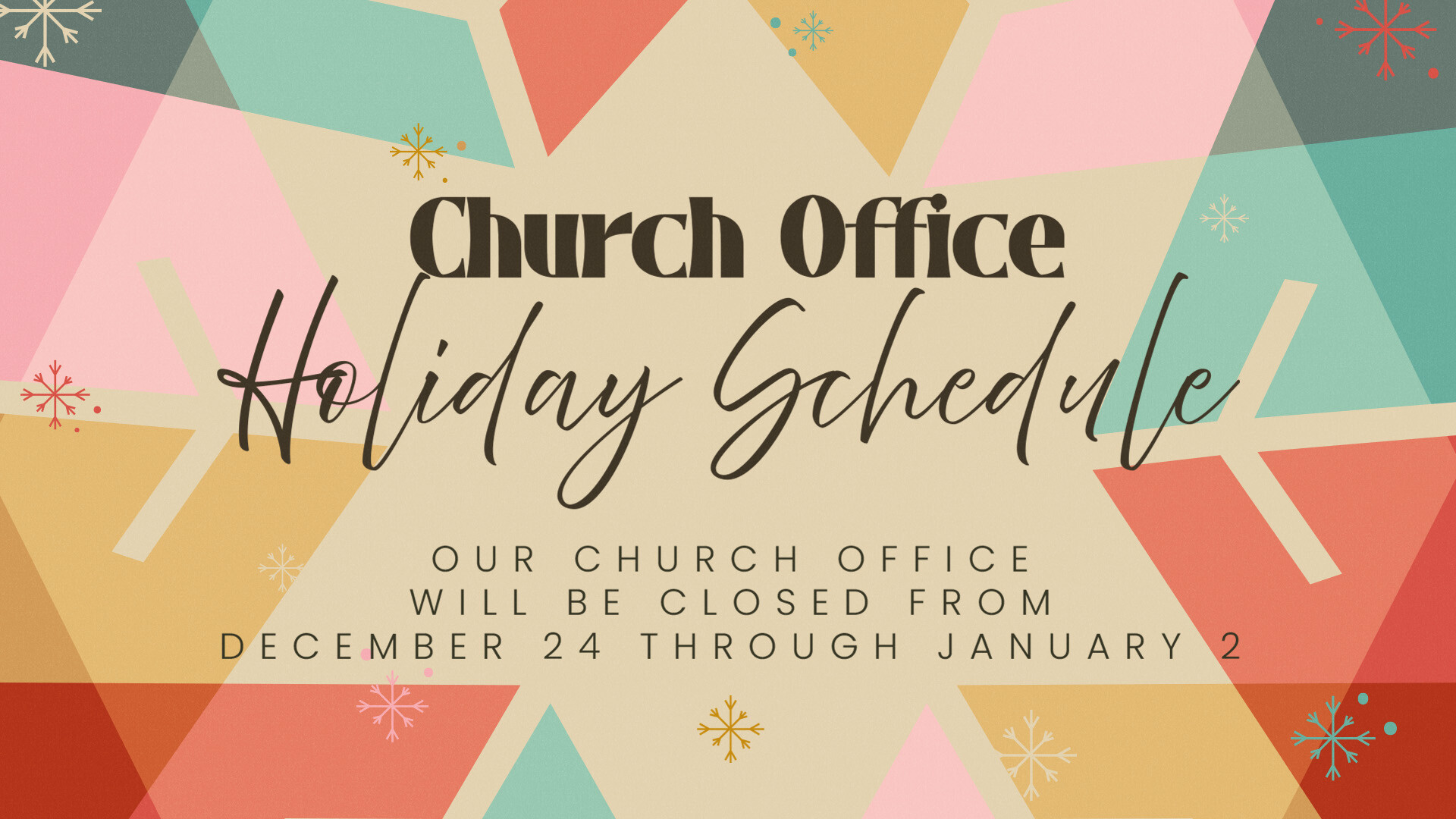 Our church offices will be closed from December 24 through January 2. It is our hope that you and your family have a blessed Christmas and new year. We'll see you at our Christmas Eve services!