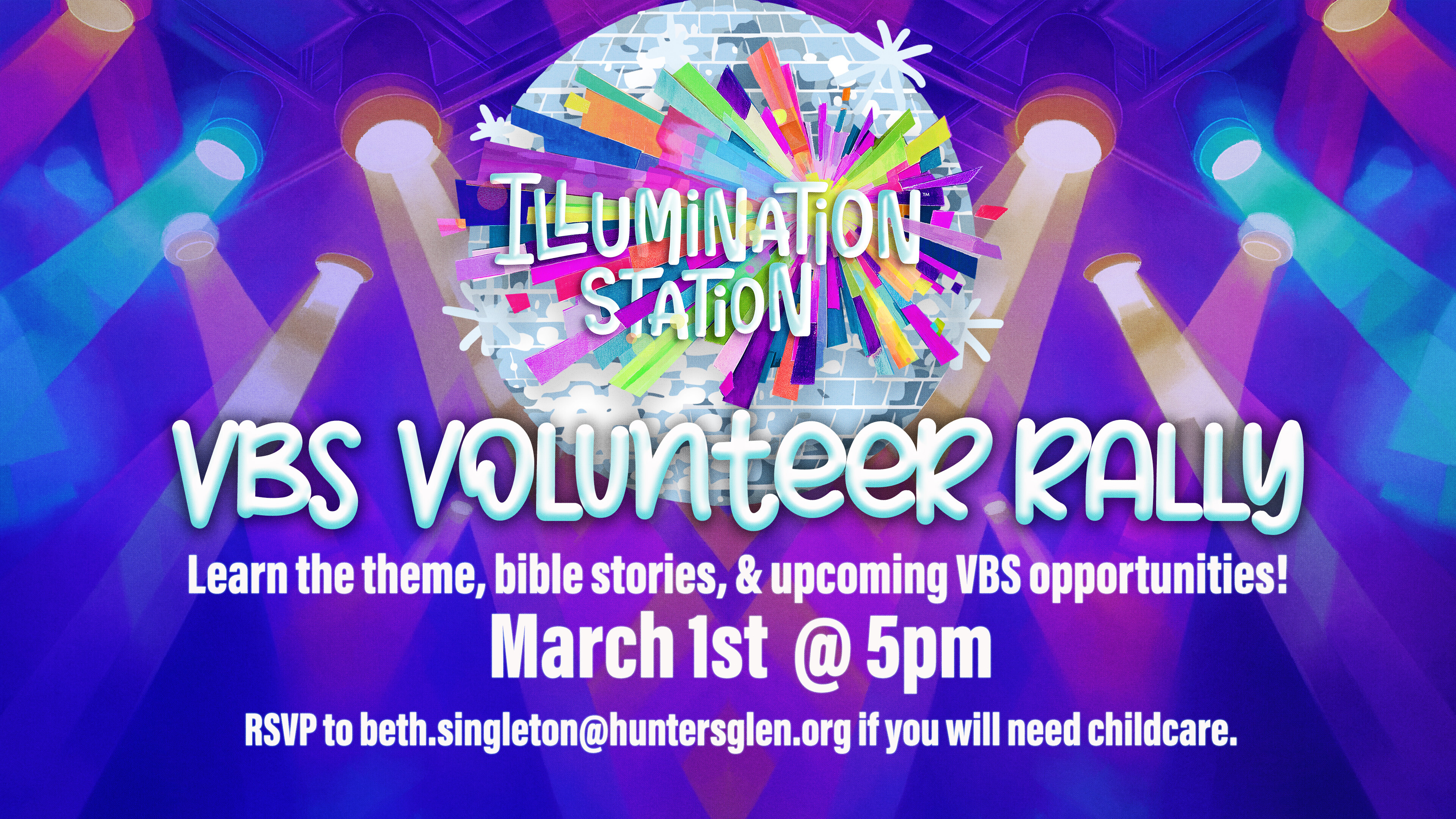 Join us for our VBS Volunteer Rally to learn the theme, bible stories, and upcoming VBS opportunities!