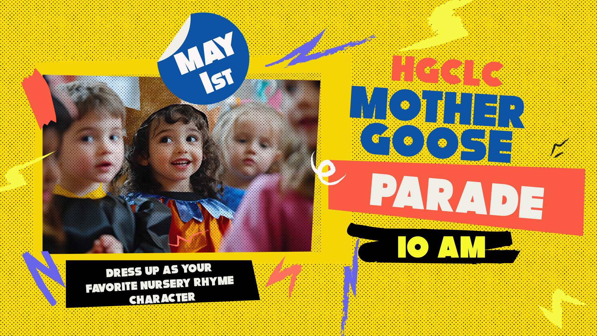 Join HGCLC for a super fun morning on May 1 at 10:00 AM for a nursery rhyme costume parade, and a retelling of our favorite nursery rhymes.