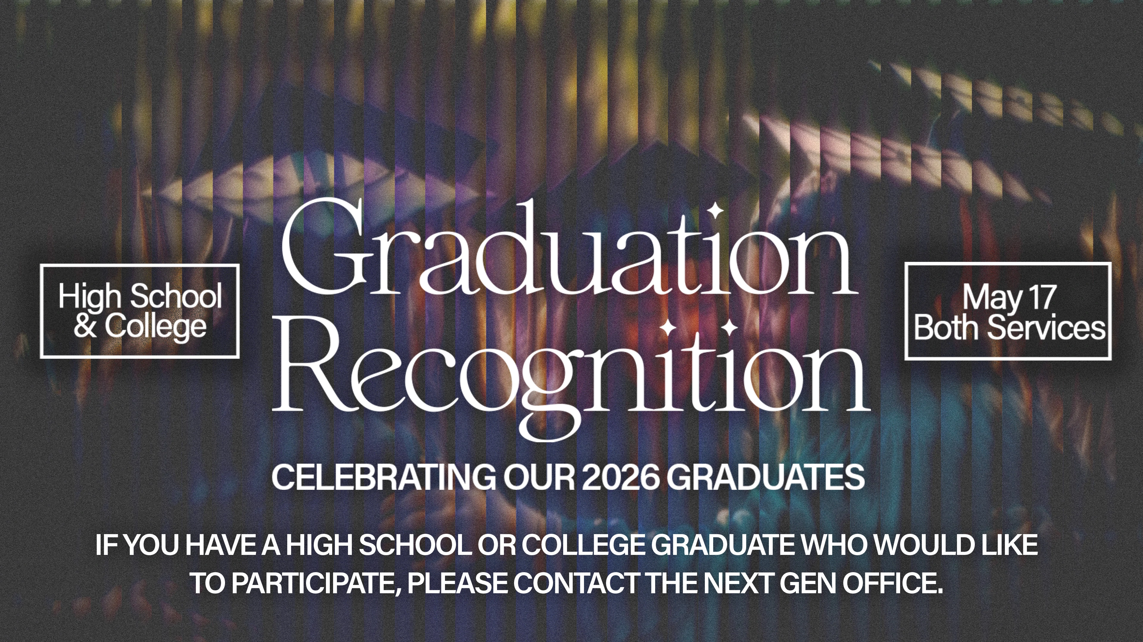 Graduation Recognition is Sunday, May 17, during both services. College Students will be recognized by Meredith Archer, and high school graduates will be recognized by the Hunters Glen Student Ministry. If you have a high school or college graduate who would like to participate, please contact the Next Gen office.