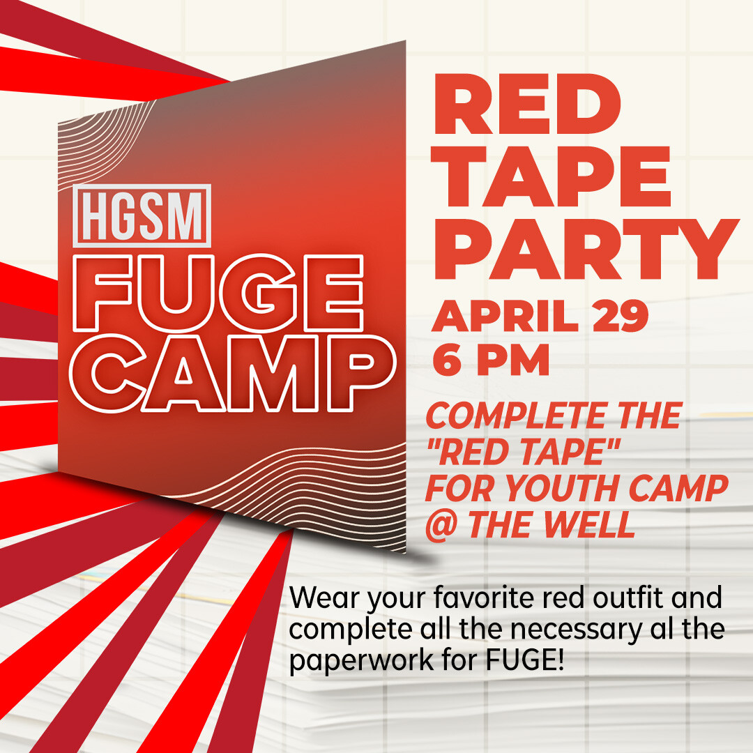 Complete the "Red Tape" for youth camp at The Well. Wear your favorite red outfit and complete all the necessary paperwork for FUGE!